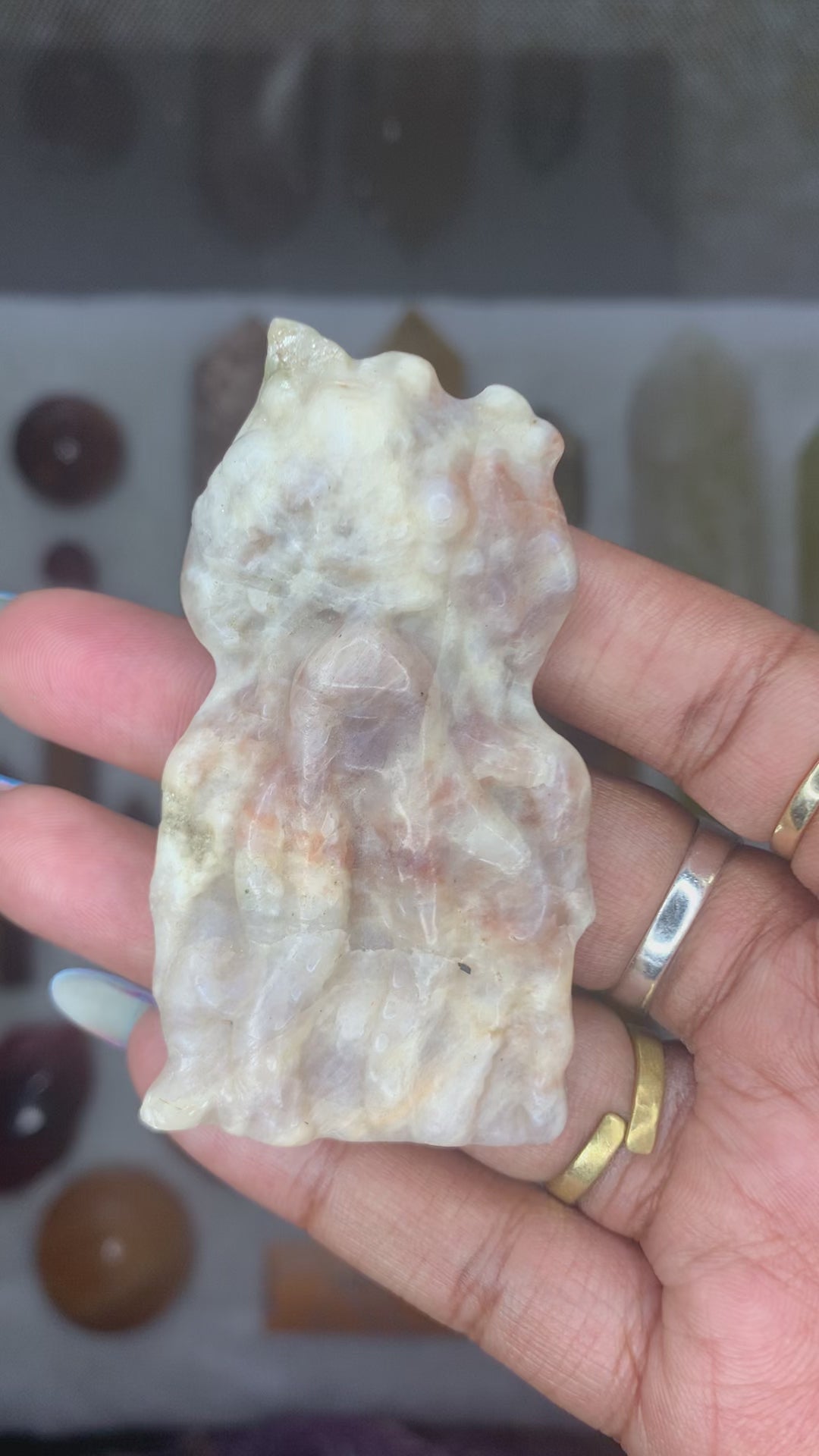 Peach Moonstone - is a soothing and gentle energetic stone and is related to labradorite since it has a blue sheen from time to time. This is an inner work and intuitive amplifying stone. There a lot of different feelings that moonstone brings but overall it is inner peace and sifting through our emotions. I personally recommend working with it during the moon phases. The peach also highlights creativity and sacral energy.